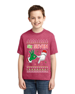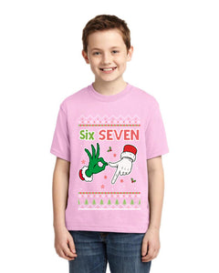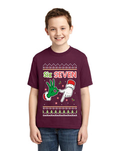 6 7 Christmas Hands Ugly Christmas Sweater For Kids | Unisex Boys Girls Graphic Youth T-Shirt