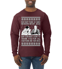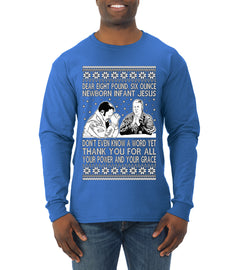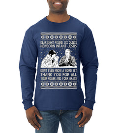 8 Pound 6 Ounce Baby Jesus Shake and Bake Ugly Christmas Sweater Mens Long Sleeve Shirt