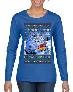 A Choo Choo I've Always Wanted One Winter Warlock Movie Ugly Christmas Sweater Womens Graphic Long Sleeve T-Shirt