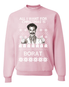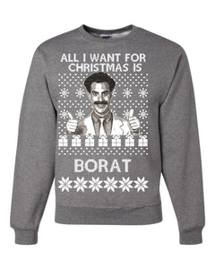 All I Want for Christmas is Borat Ugly Christmas Sweater Unisex Crewneck Graphic Sweatshirt