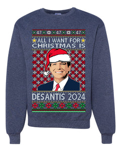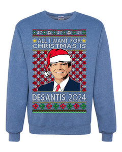 All I Want For Christmas Is Desantis 2024 President Elections Ugly Christmas Sweater Unisex Crewneck Graphic Sweatshirt