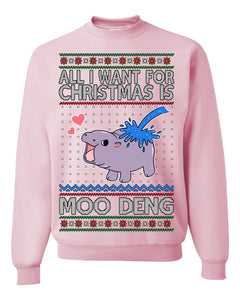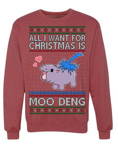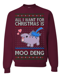 All I Want for Christmas is Moo Deng Cute Pygmy Hippo Ugly Christmas Sweater Crewneck Sweatshirt