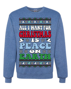All I Want For Christmas Is Peace on Earth Ugly Christmas Sweater Unisex Crewneck Sweatshirt