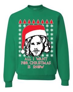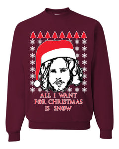 All I Want for Christmas is Snow GoT Stark Merry Ugly Christmas Sweater Unisex Crewneck Graphic Sweatshirt