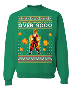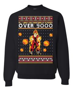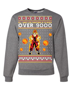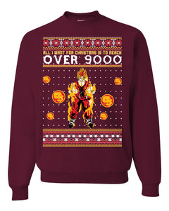All I Want For Christmas Is To Reach Over 9000 Ugly Christmas Sweater Unisex Crewneck Graphic Sweatshirt