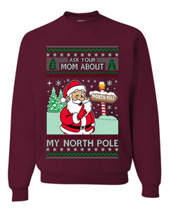 Ask Your Mom About My North Pole Naughty Santa, Unisex Ugly Christmas Sweater, Crewneck Sweatshirts