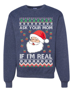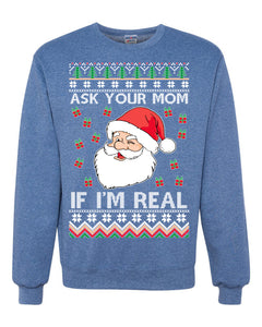 Ask Your Mom If I'm Real Funny Santa Christmas Unisex Crewneck Graphic Sweatshirt