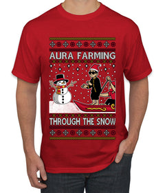 Aura Farming Through The Snow Meme, Ugly Christmas Sweater Unisex Men's T-Shirt