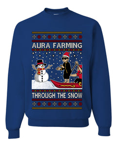 Aura Farming Through The Snow Meme, Unisex Ugly Christmas Sweater, Crewneck Sweatshirts