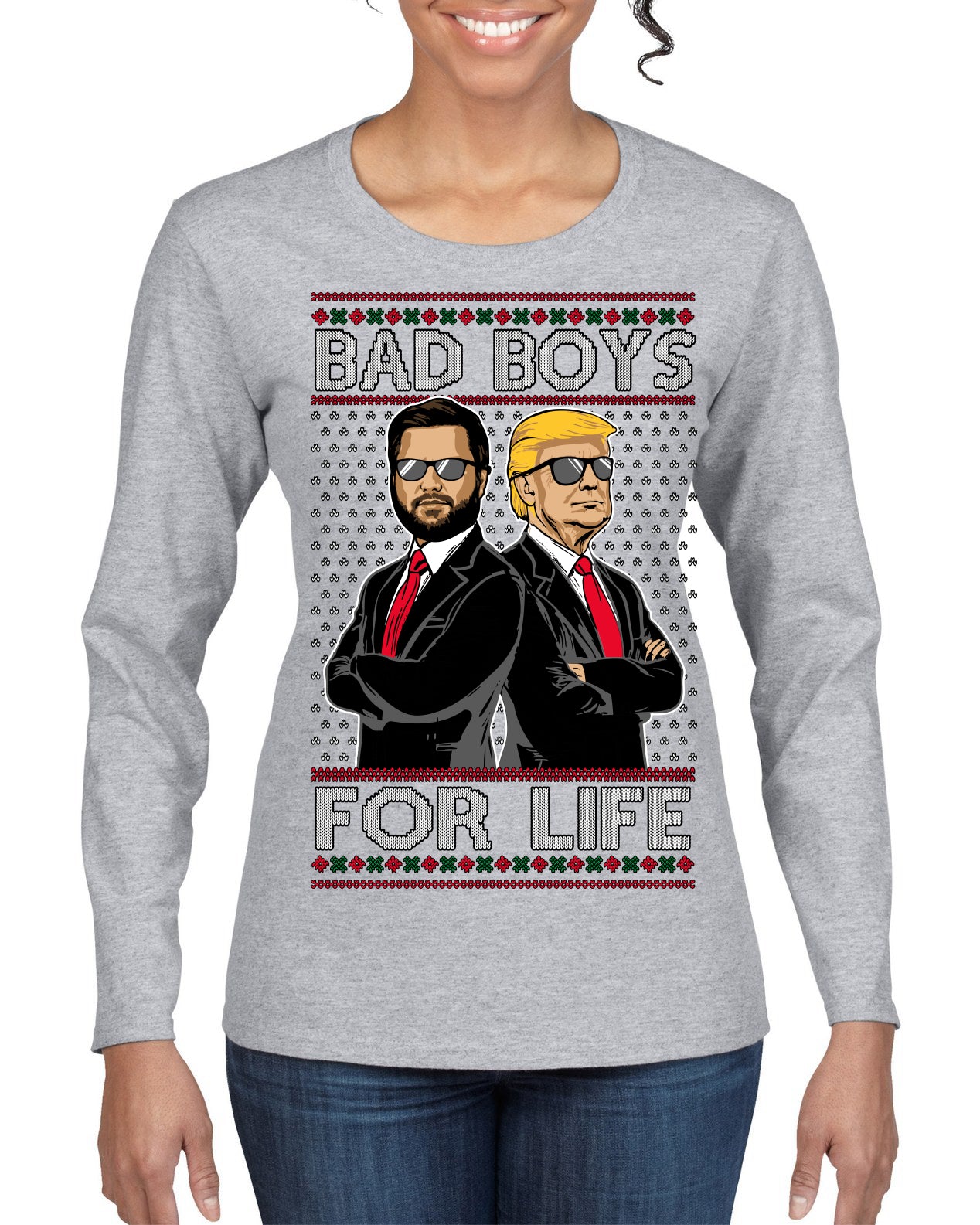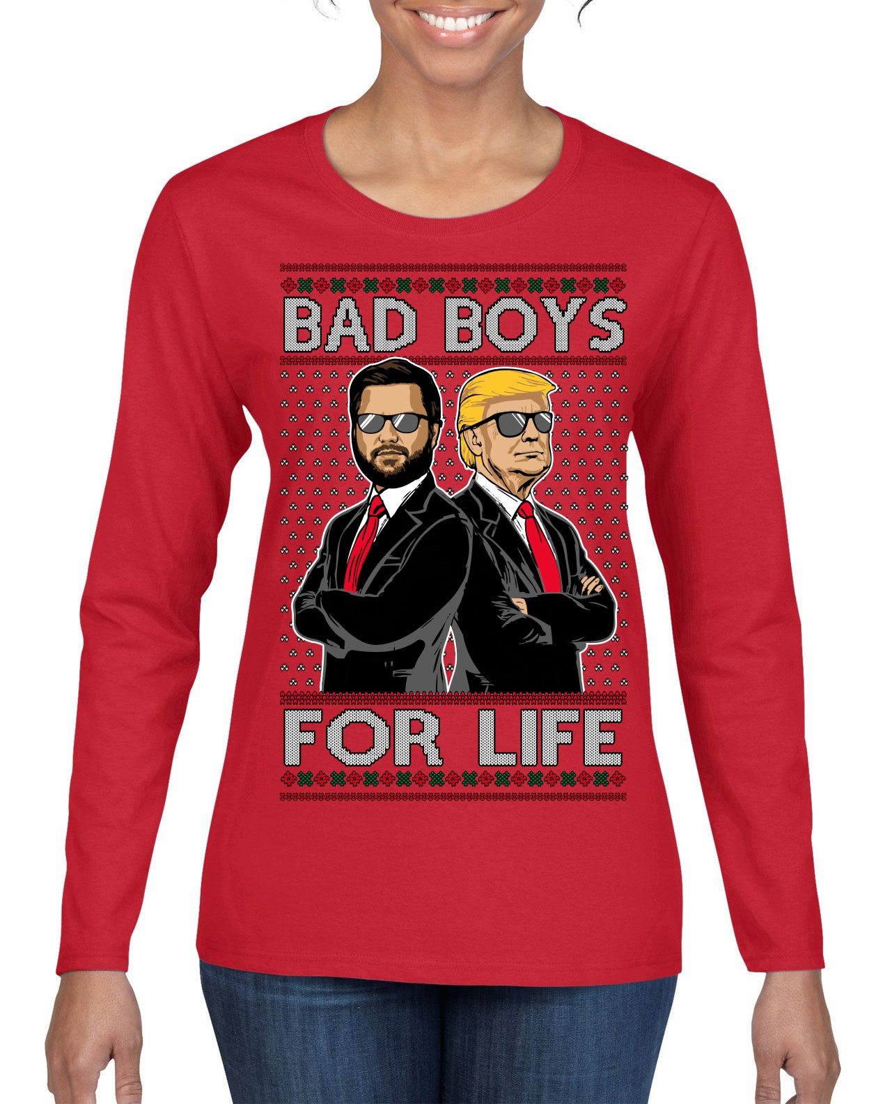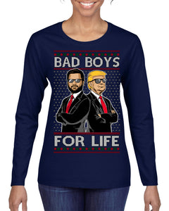 Bad Boys for Life Donald Trump JD Vance Funny 90s Movie Ugly Christmas Sweater Womens Graphic Long Sleeve T-Shirt
