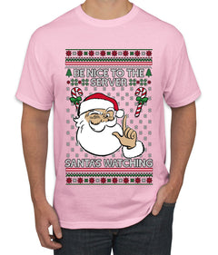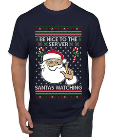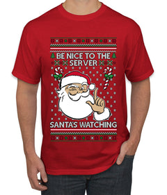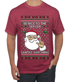 Be Nice To The Server Santa's Watching, Ugly Christmas Sweater Unisex Men's T-Shirt