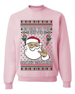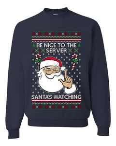 Be Nice To The Server Santa's Watching, Unisex Ugly Christmas Sweater, Crewneck Sweatshirts
