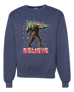 Believe Sanata Sasquatch Bigfoot Merry Christmas Merry Christmas Unisex Crewneck Graphic Sweatshirt