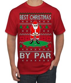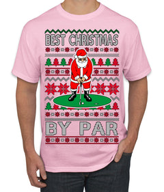Best Christmas By Par Funny Santa Golfing Pun Sports Golf Ugly Christmas Sweater Men's T-Shirt