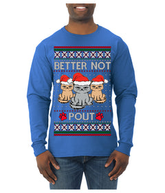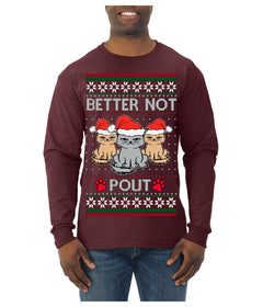 Better Not Pout, Cute Sad Santa Cats | Funny Ugly Christmas Sweater Mens Long Sleeve Shirt