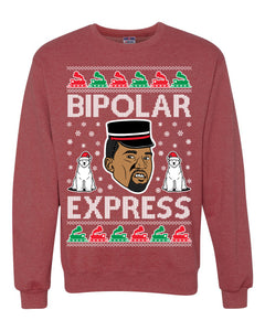 Bipolar Express Ye Funny Xmas Ugly Christmas Sweater Unisex Crewneck Graphic Sweatshirt