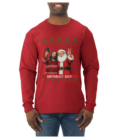 Birthday Boy Jesus, Ugly Christmas Sweater Unisex Mens Long Sleeve Shirt