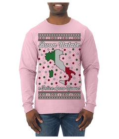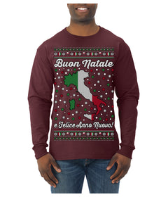 Buon Natale e Felice Anno Nuovo! Merry Christmas and Happy New Year Ugly Christmas Sweater Mens Long Sleeve Shirt