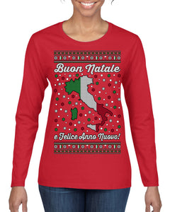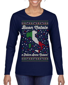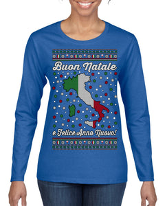 Buon Natale e Felice Anno Nuovo! Merry Christmas and Happy New Year Ugly Christmas Sweater Womens Graphic Long Sleeve T-Shirt