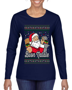 Buon Natale, Italian Santa Claus, Funny, Italian American Humor, Ugly Christmas Sweater Womens Graphic Long Sleeve T-Shirt