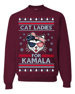 Cat Ladies for Kamala USA Glasses Ugly Christmas Sweater Crewneck Sweatshirt