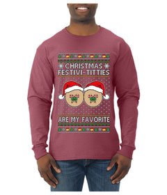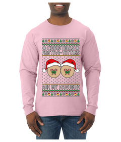 Christmas Festivi-Titties Are My Favorite, Ugly Christmas Sweater Unisex Mens Long Sleeve Shirt