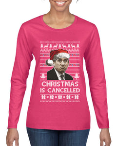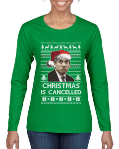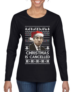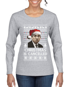 Christmas Is Cancelled Michael Scott Office Ugly Christmas Sweater Womens Graphic Long Sleeve T-Shirt