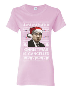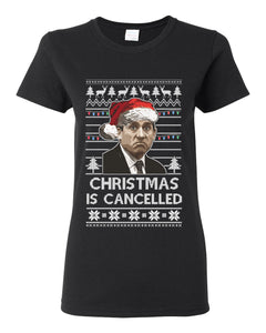 Christmas Is Cancelled Michael Scott Office Ugly Christmas Sweater Womens Graphic T-Shirt