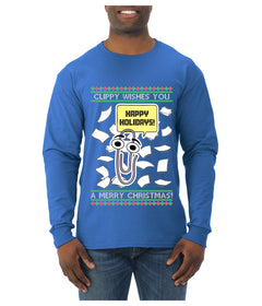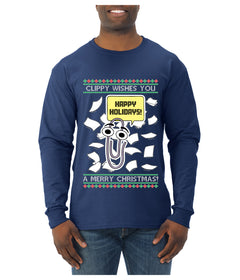 Clippy Wishes You A Merry Christmas Office Assistant, Ugly Christmas Sweater Unisex Mens Long Sleeve Shirt