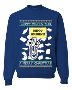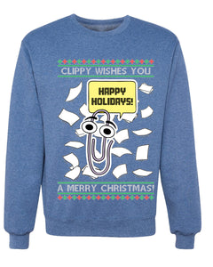 Clippy Wishes You A Merry Christmas Office Assistant, Unisex Ugly Christmas Sweater, Crewneck Sweatshirts
