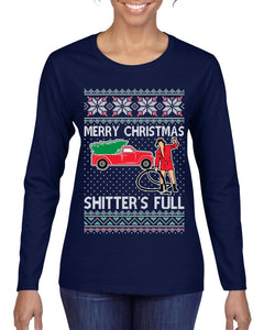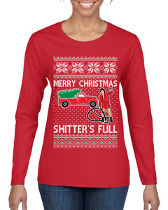 Cousin Eddie Merry Christmas Shitter's Full Ugly Christmas Sweater Womens Graphic Long Sleeve T-Shirt