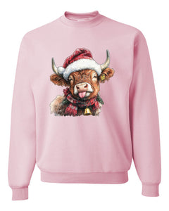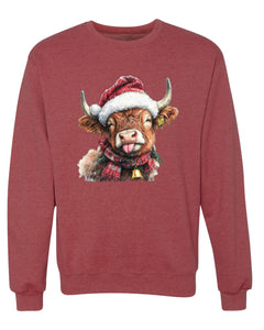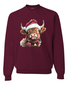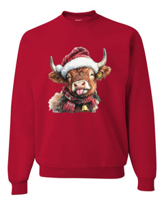 Cute Fluffy Christmas Cow with Santa Hat, Cute Christmas Design, Unisex Christmas Sweater, Crewneck Sweatshirts