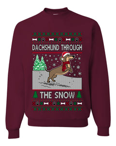 Dachshund Through The Snow, Cute Dog Christmas Sweater, Ugly Christmas Unisex Sweater, Crewneck Sweatshirts