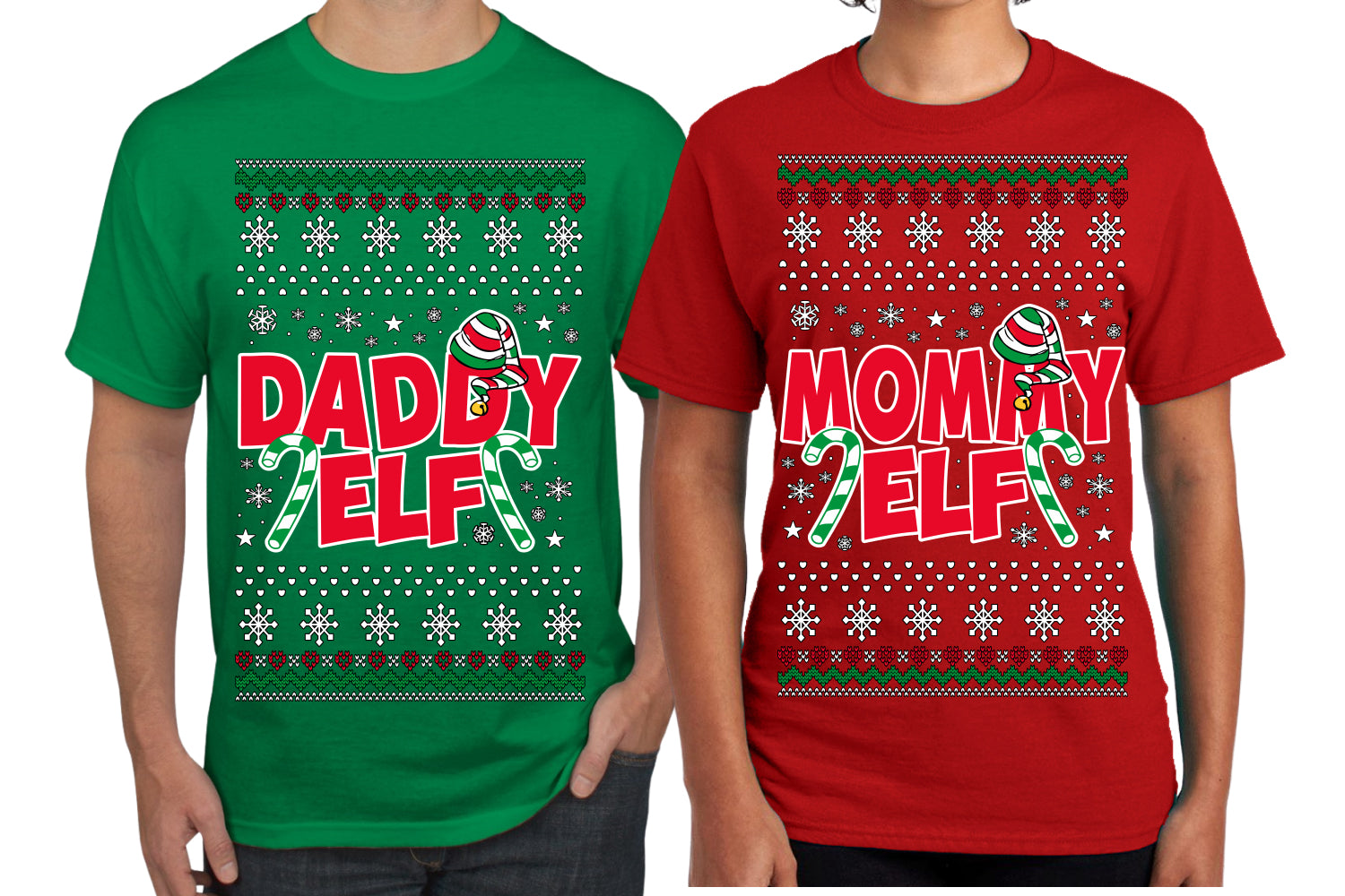 Daddy Elf Mommy Elf Matching His and Hers Couples Shirt Girlfriend Boyfriend Gift His and Hers Matching Ugly Christmas Couple T-Shirt