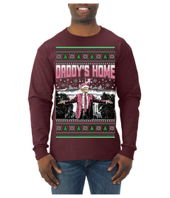 Daddy's Home Pink Suit, I'll Be Home for Christmas | Funny Santa Clause President Donald Trump Ugly Christmas Sweater Mens Long Sleeve Shirt