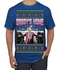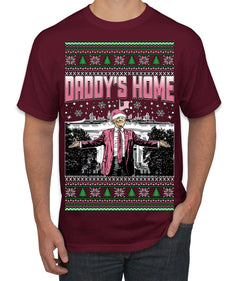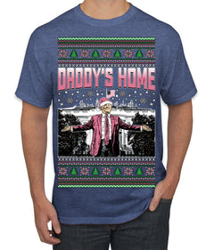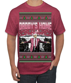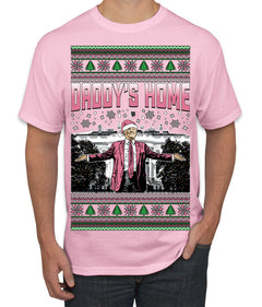 Daddy's Home Pink Suit, I'll Be Home for Christmas | Funny Santa Clause President Donald Trump Ugly Christmas Sweater Men's T-Shirt