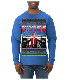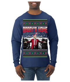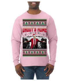 Daddy's Home Red Suit, I'll Be Home for Christmas | Funny Santa Clause President Donald Trump Ugly Christmas Sweater Mens Long Sleeve Shirt