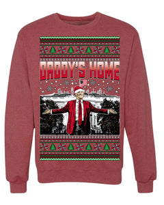 Daddy's Home Red Suit, I'll Be Home For Christmas | Funny Santa Clause President Donald Trump Xmas Sweaters Crewneck Sweatshirt