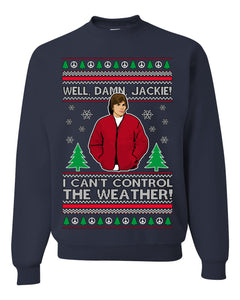 Damn Jackie I Can't Control the Weather Funny 70s Show Ugly Christmas Sweater Crewneck Sweatshirt