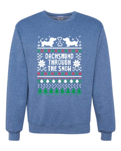 Daschund Through The Snow Christmas Unisex Crewneck Graphic Sweatshirt