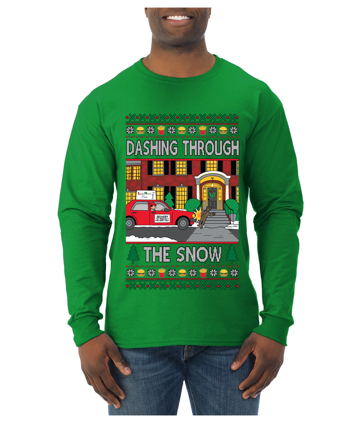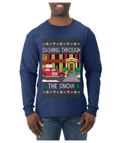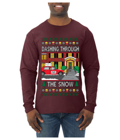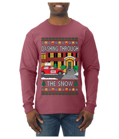 Dashing Through The Snow Classic 90s Holiday Movie, Ugly Christmas Sweater Unisex Mens Long Sleeve Shirt