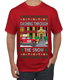 Dashing Through The Snow Classic 90s Holiday Movie, Ugly Christmas Sweater Unisex Men's T-Shirt