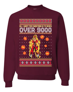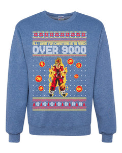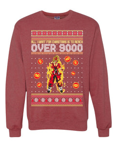 DBZ Anime Cartoon Fan Reach Over 9,000 Ugly Christmas Sweater Unisex Crewneck Sweatshirt