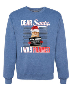 Dear Santa I was Framed Bad Cat Merry Christmas Unisex Crewneck Graphic Sweatshirt