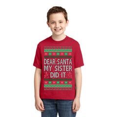 Dear Santa My Sister Did It Christmas Unisex Boys Girls Graphic Youth T-Shirt