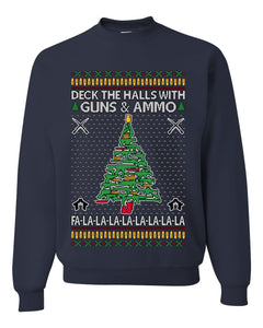 Deck The Halls With Guns & Ammo Fa La La La La,Unisex Ugly Christmas Sweater, Crewneck Sweatshirts