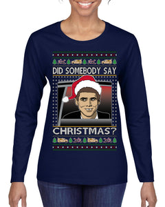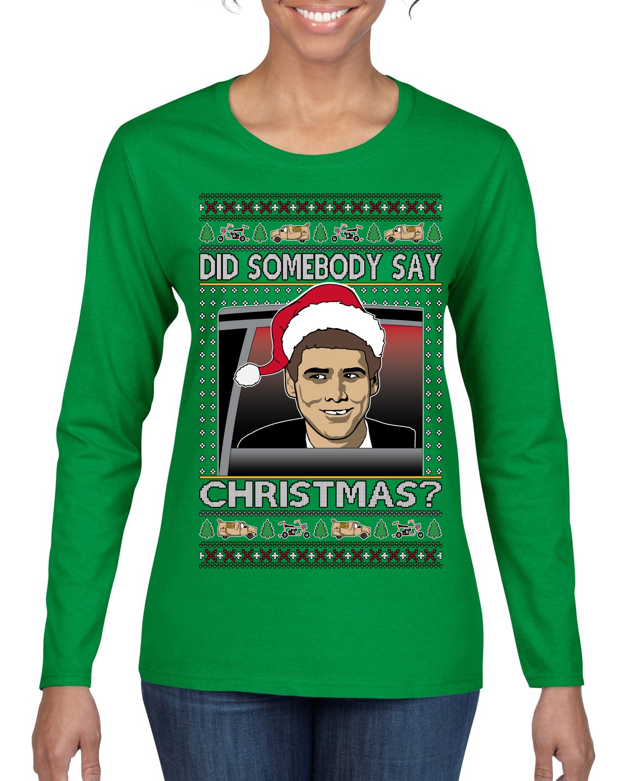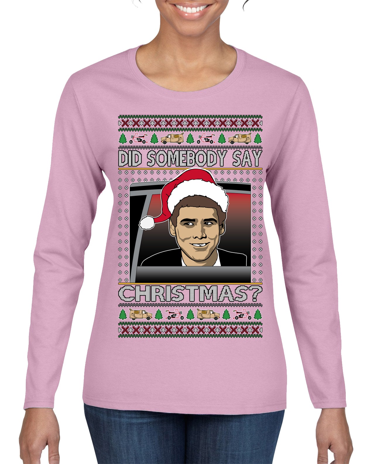 Did Somebody Say Christmas? Lloyd Dumb Dumber 90s Movie Ugly Christmas Sweater Womens Graphic Long Sleeve T-Shirt