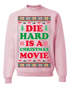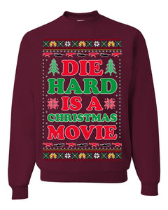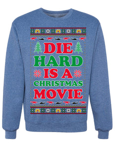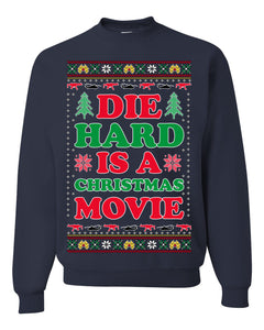 Die Hard is a Christmas Movie Classic, McClane Hans Nakatomi Plaza Xmas Party Holiday Movies Ugly Christmas Sweater Crewneck Sweatshirt