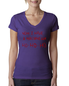 Die Hard Now I Have a Machine Gun Ho ho ho Christmas Womens Junior Fit V-Neck Tee