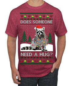 Does Someone Need a Hug? Cute Raccoon Ugly Christmas Sweater Men's T-Shirt